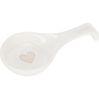 Sentiment Beige Spoon Rest Info : Keep your used teaspoons on this Sentiment Beige Spoon Rest in between uses and save on washing up. With charming heart detail and elegant 'spoon' typography, this spoon rest features a long handle with a hole for it to be hung up out of the way when not in use.