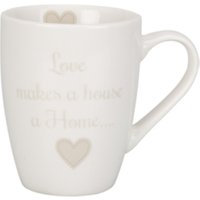 Sentiment Beige Mug - Single Info : Relax after a long day with a steaming cuppa infused to perfection in the Sentiment Beige Mug. Its wide handle and bullet shape mean you won't burn yourself on the side as you lift the cup to take a sip, and its simple, understated design features sweet typography saying ¿love makes a house a home¿ that will match with any other crockery in your home.